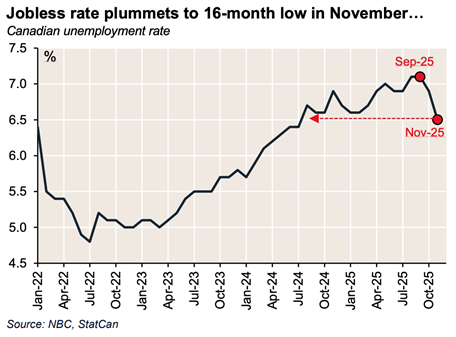 Canada’s economic picture remains fragile. Late-2025 data surprised modestly to the upside, driven largely by a sharp decline in the unemployment rate to 6.5% following several months of solid job gains. However, this improvement was concentrated over a short period and appears to have been influenced more by labour force dynamics than by a broad-based strengthening in economic activity. Importantly, domestic demand, business investment, and hiring intentions did not show a comparable improvement.