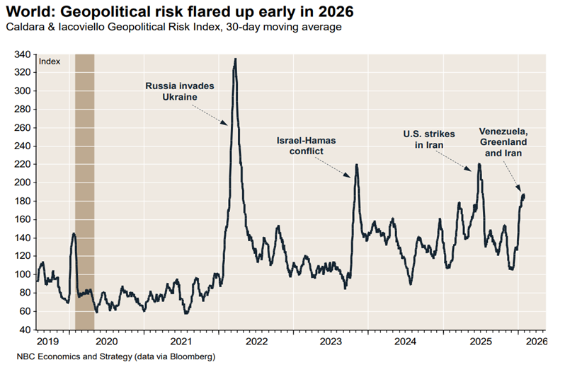 Commodity markets continued to play an important role in shaping equity performance early in 2026. Industrial metals and energy-related sectors have benefited from the prospect of increased infrastructure spending and rising electricity demand associated with data centres, electrification, and the expansion of artificial intelligence infrastructure.