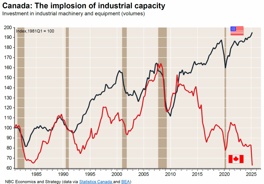 - Canada’s structural weaknesses, especially in investment and productivity, are being laid bare by protectionist shocks